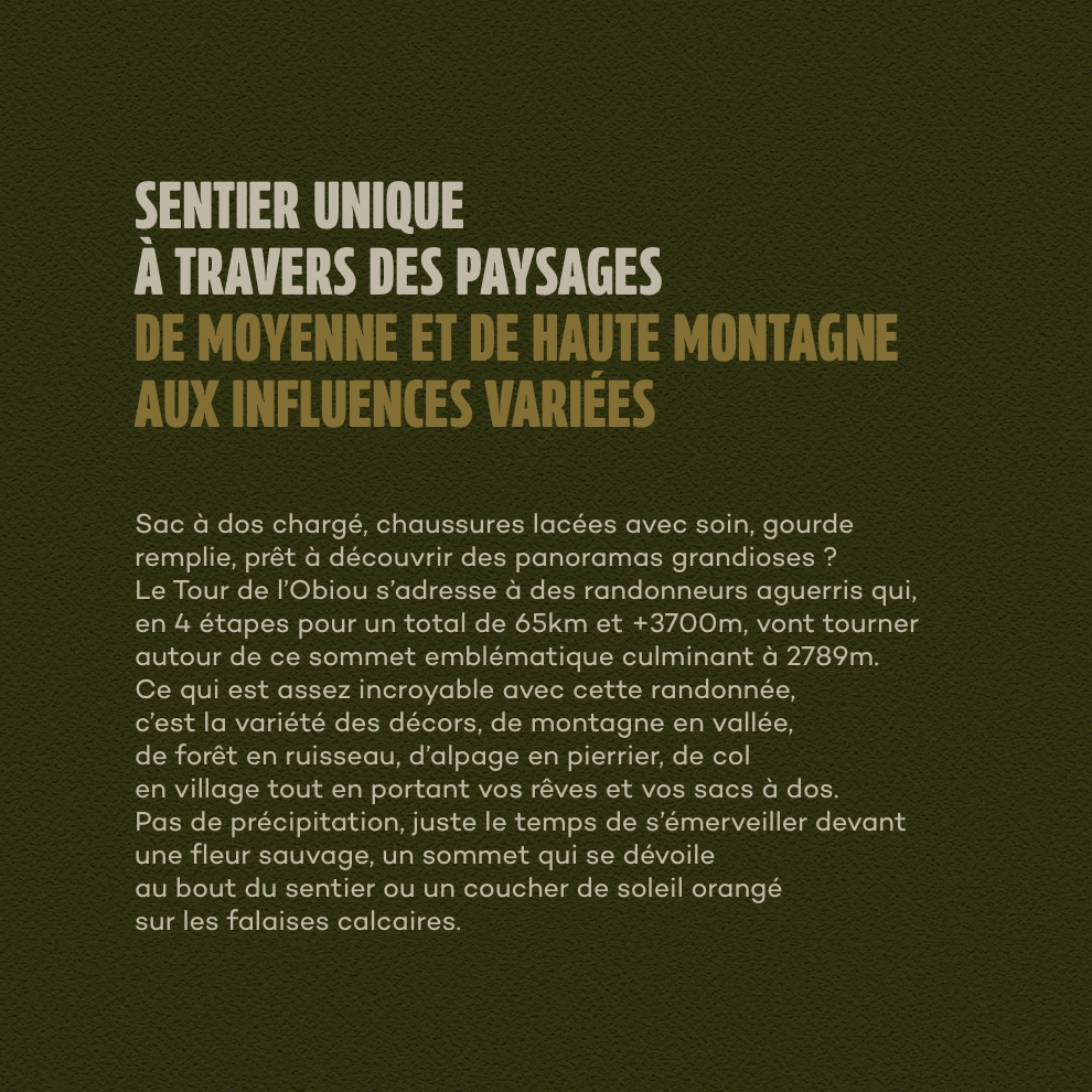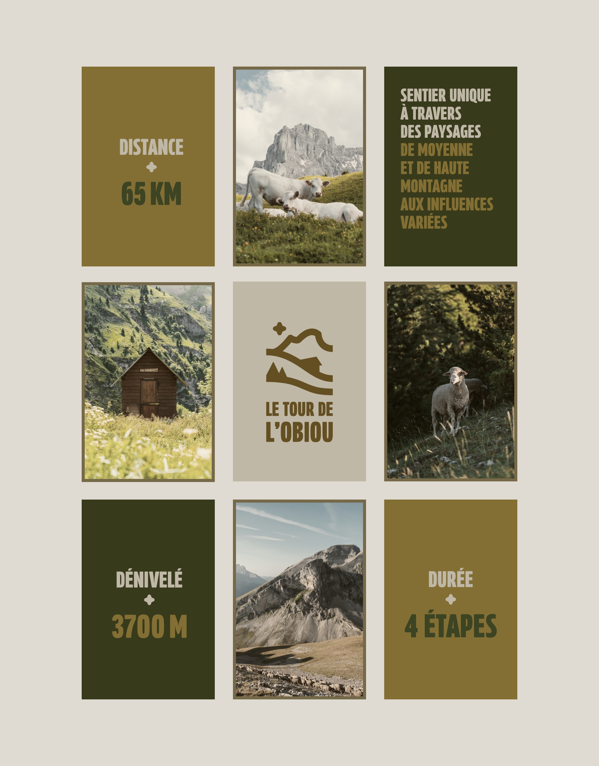 La nouvelle identité repose sur un logo vertical évoquant la diversité des paysages du parcours. La palette de couleurs et la typographie condensée viennent compléter l’ensemble afin de créer une identité visuelle cohérente avec les paysages traversés.